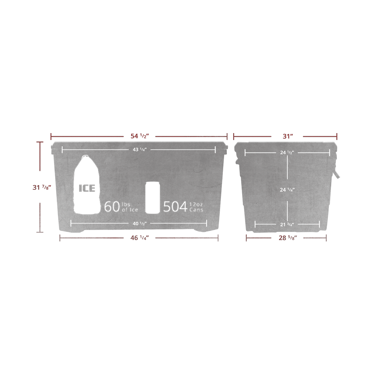 The American-made Grizzly 400’s exterior measures 54 1/2 inches wide by 30 3/4 inches deep, and stands 32 inches high. 400 Quart Capacity. 90 lbs empty.
