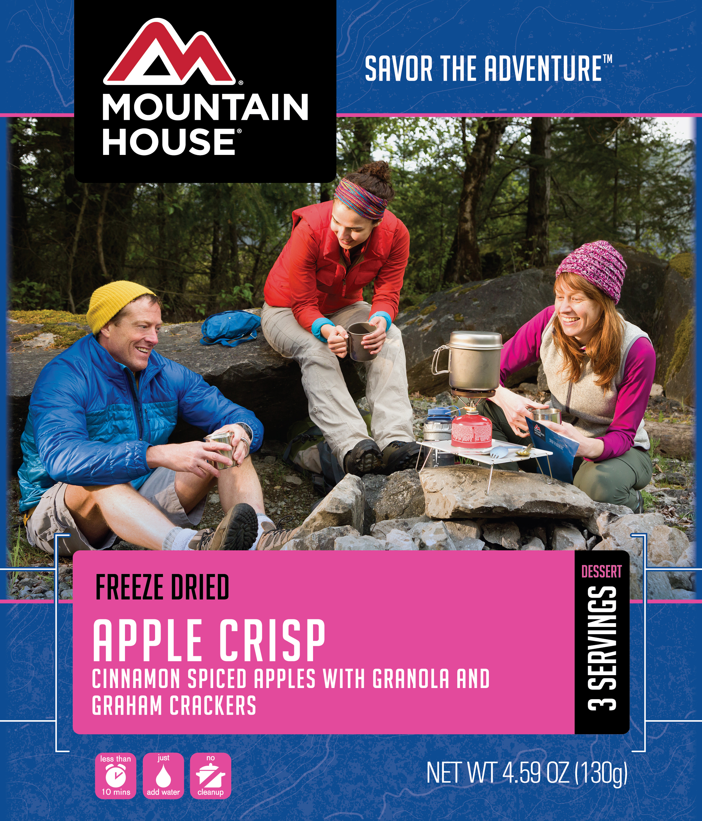 Be the hero of the group and bring dessert on your next outdoor adventure. Mountain House Apple Crisp is made with real apples, crunchy granola and a tasty cinnamon spice blend.