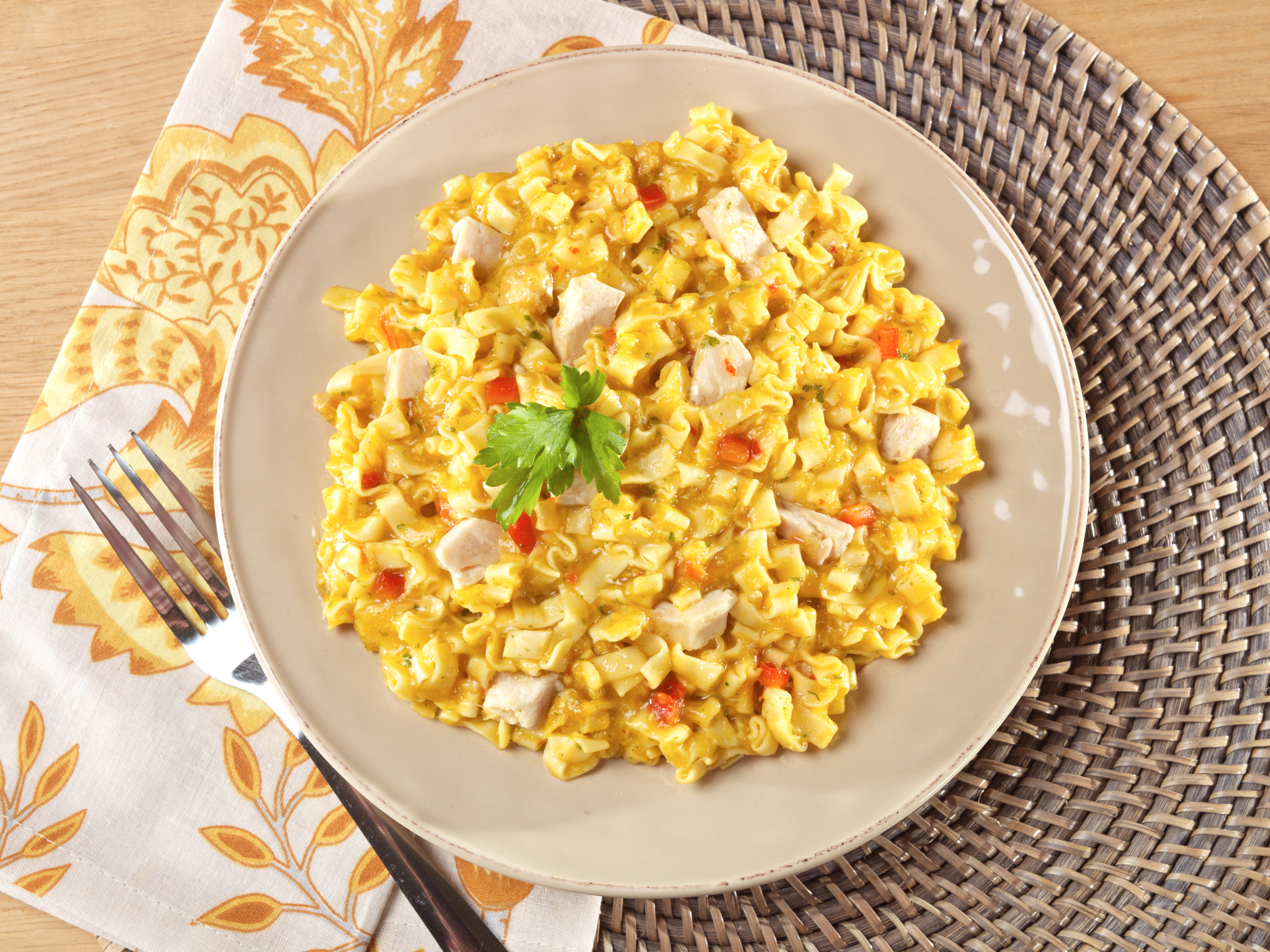 Sometimes you want simple flavors that satisfy. Made with noodles, real chicken pieces, and red pepper in a savory sauce. A hot and delicious meal that the whole family will love.