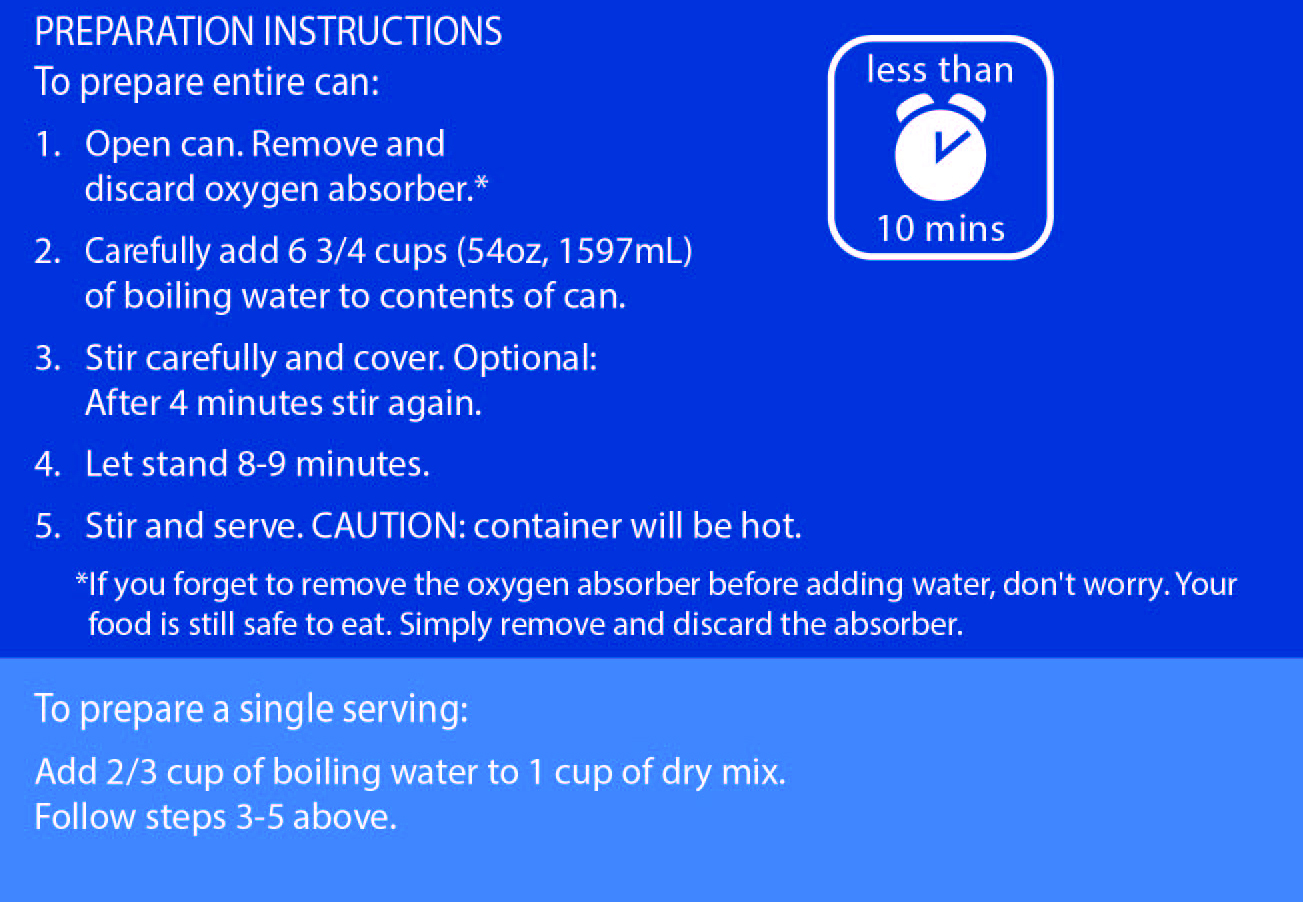Perfectly seasoned rice and chicken in a savory sauce accented with pimentos, its no wonder this is one of our best-selling meals. Perfect for those times youre snowed in, the power is out, youre on the trail, or just because. Rice and chicken smothered in a creamy sauce, with a home-cooked flavor, is the perfect solution to fend off hunger.