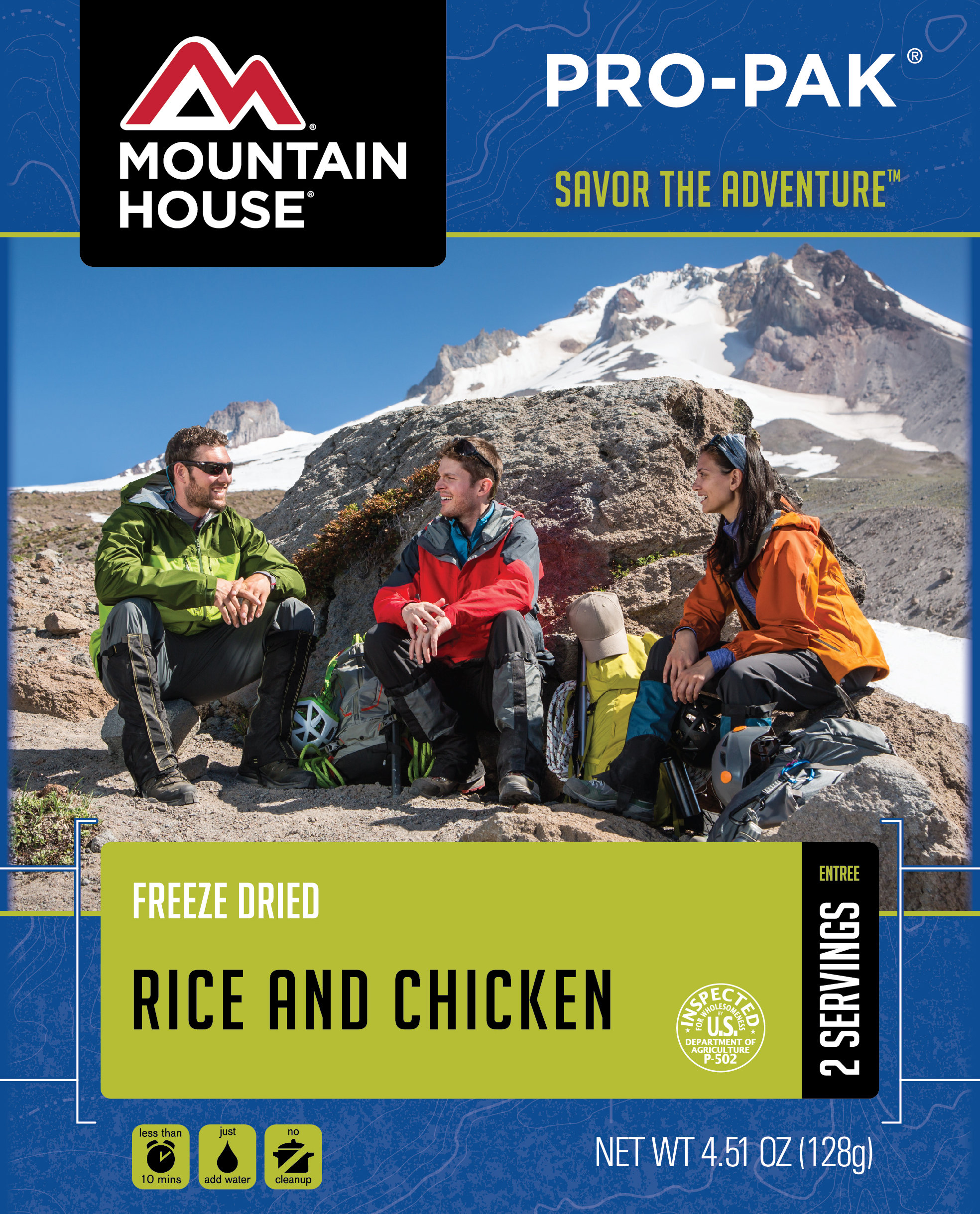 Perfectly seasoned rice and chicken in a savory sauce accented with pimentos, its no wonder this is one of our best-selling meals. Perfect for those times youre snowed in, the power is out, youre on the trail, or just because. Rice and chicken smothered in a creamy sauce, with a home-cooked flavor, is the perfect solution to fend off hunger.